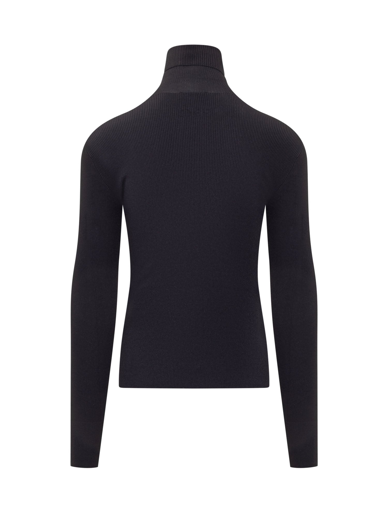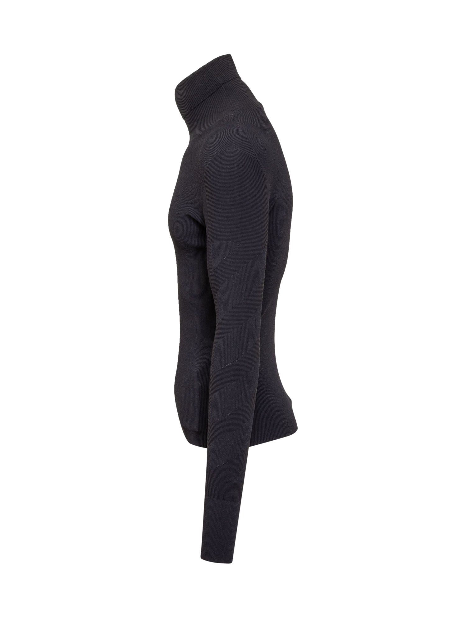 Maglia blu a maniche lunghe. Dolcevita. Logo sul davanti. Costine all-over.