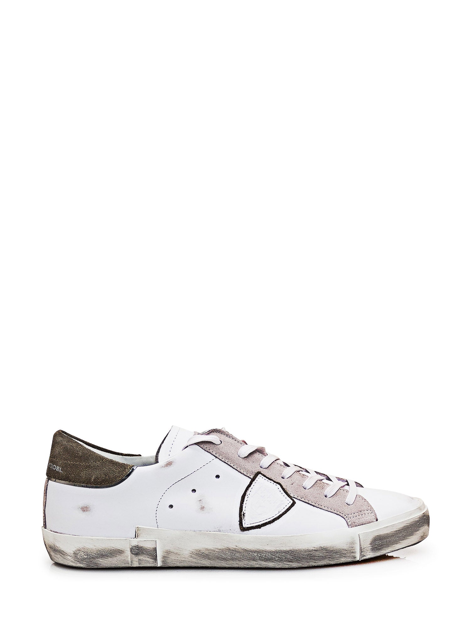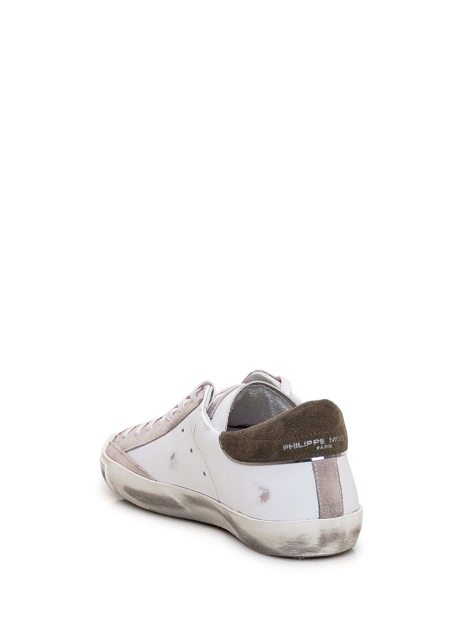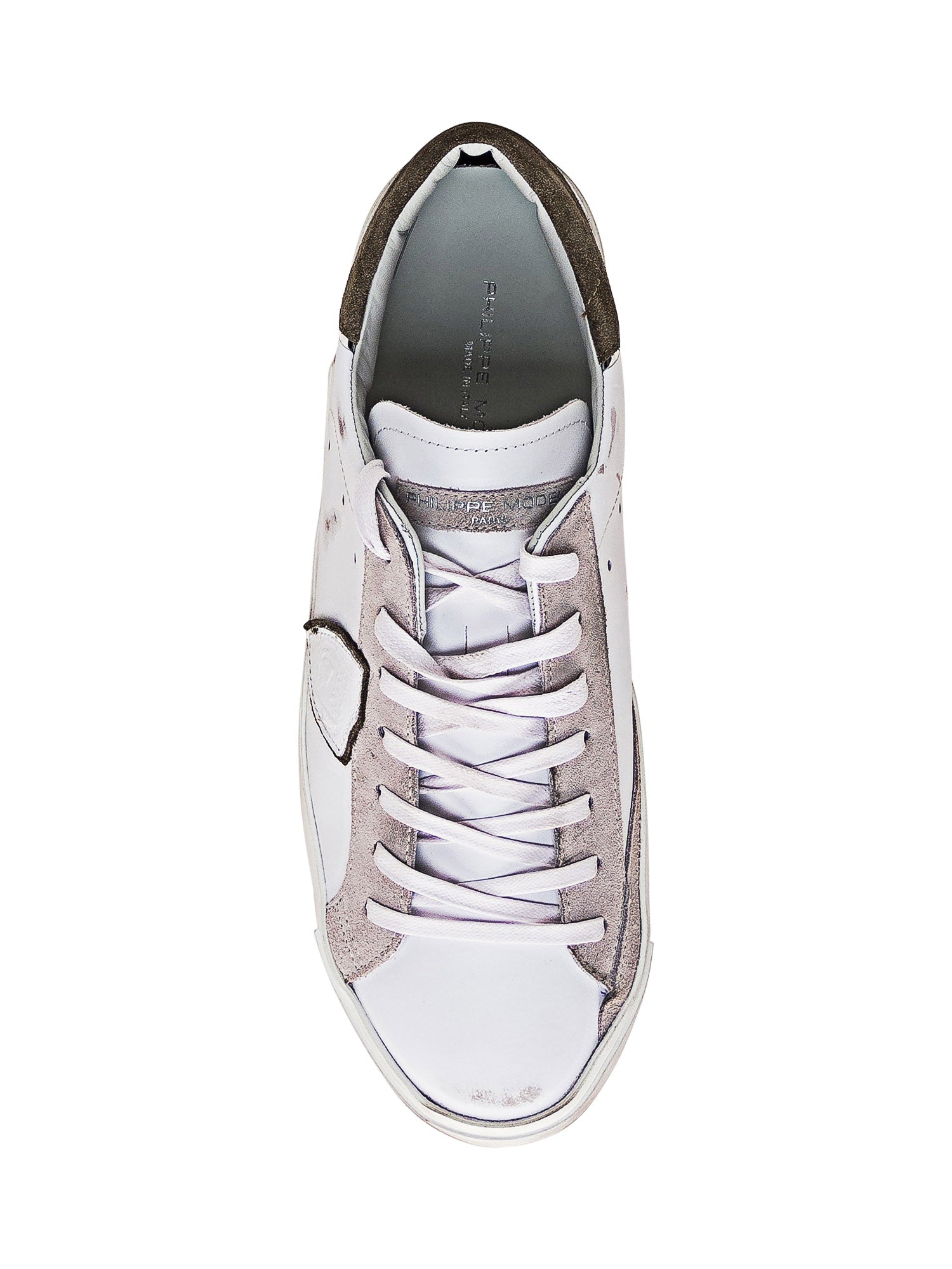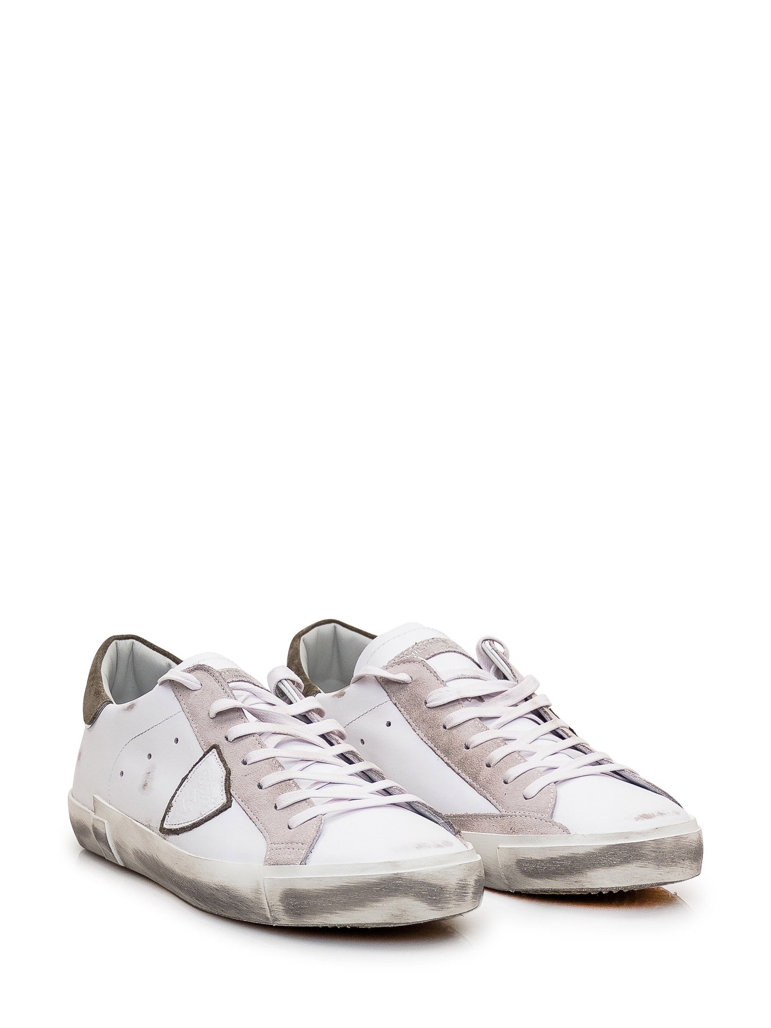 Sneaker bianca in pelle con effetto usurato. Inserti in pelle scamosciata. Chiusura con lacci. Patch Logo sulla linguetta. Patch logo scudetto embossed sul lato.