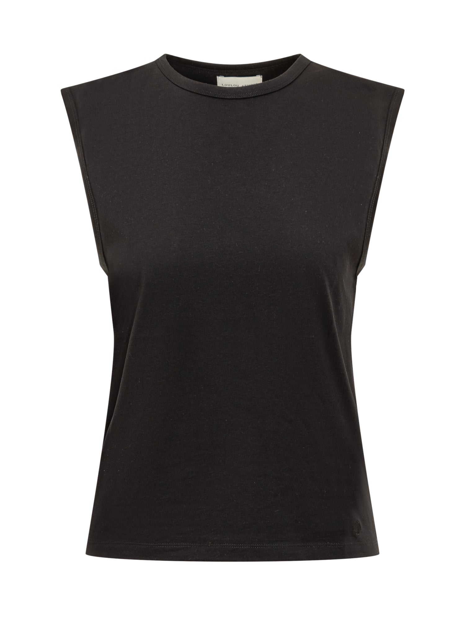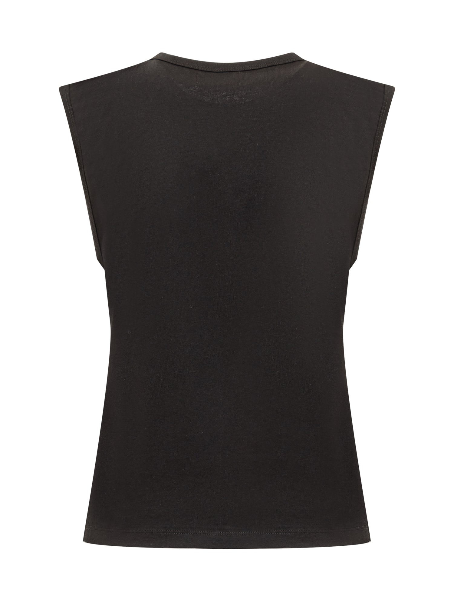 Top smanicato e sfiancato. Girocollo. Orli a costine.